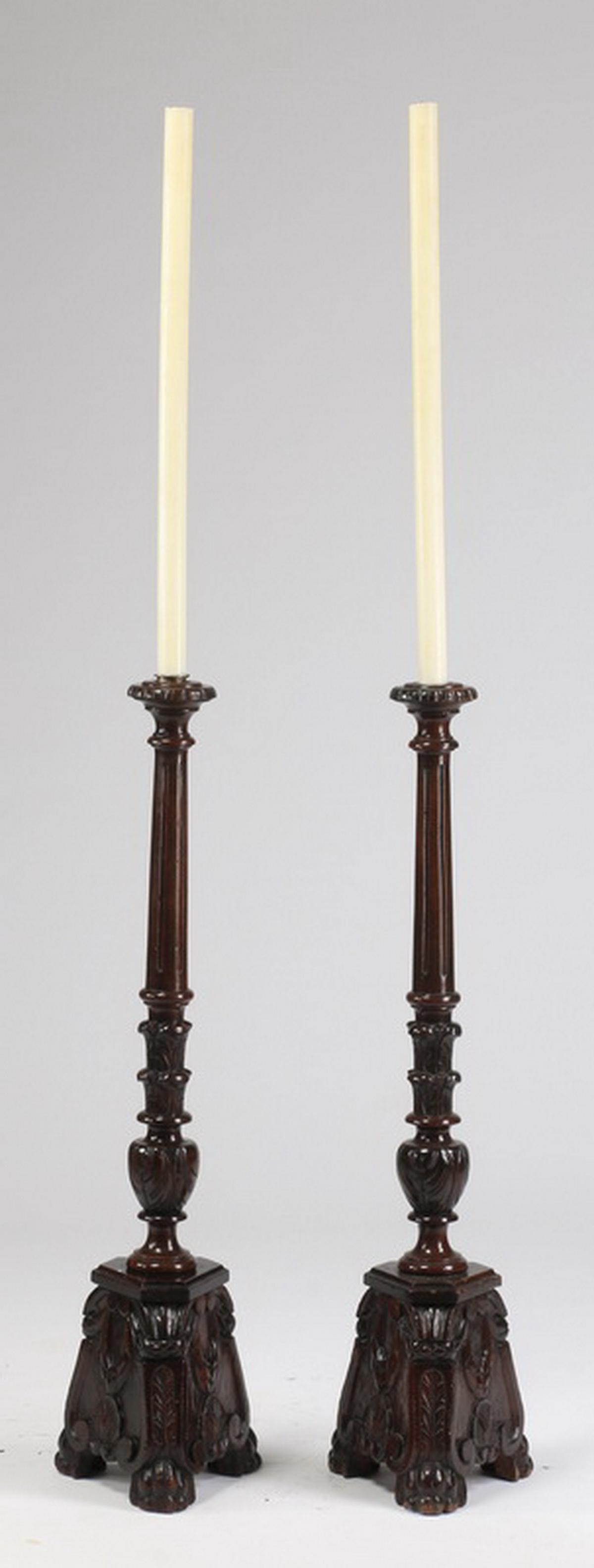 (2) 19th c. carved floor candlesticks, 43"h