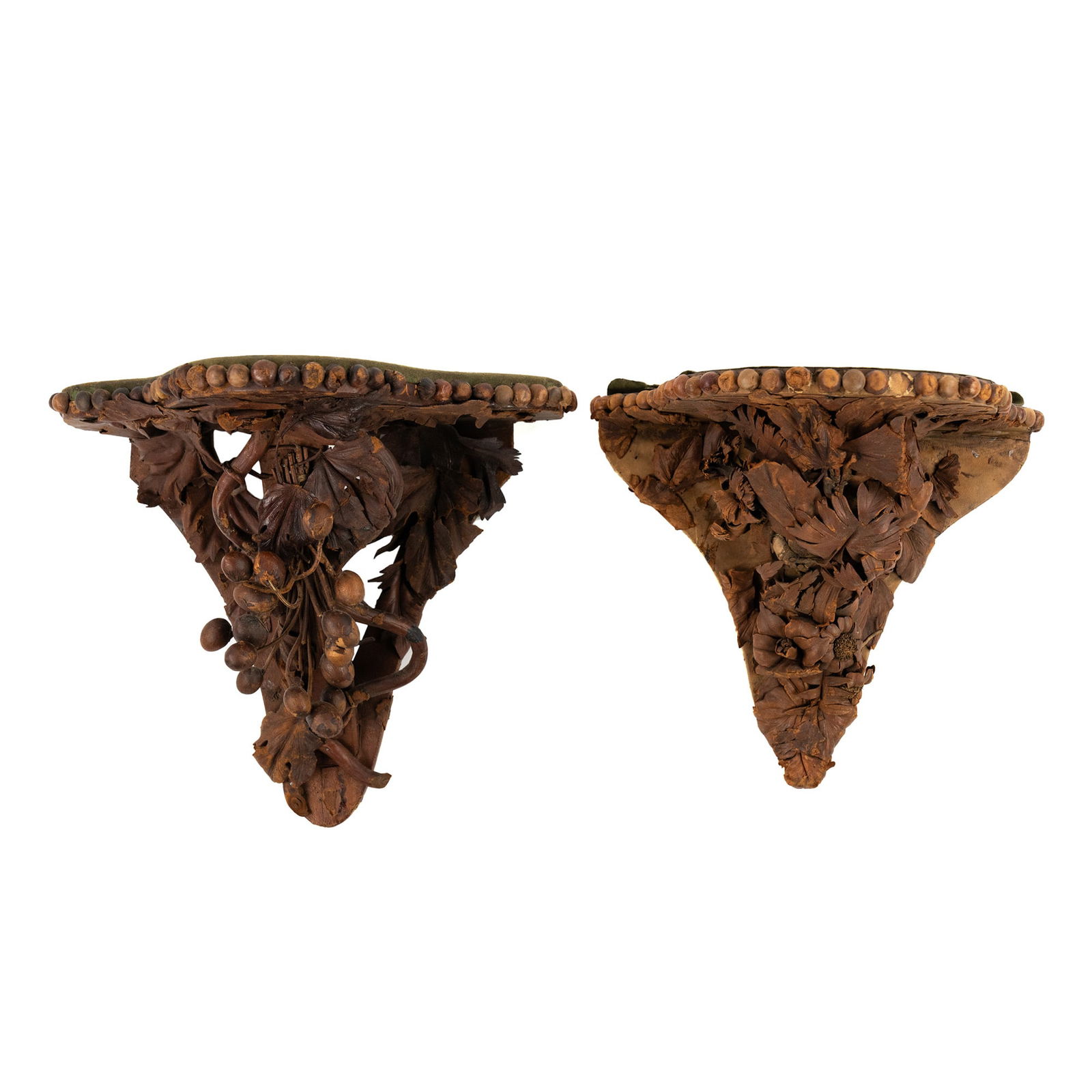 (2) 19th C. Leather Covered Wooden Wall Brackets