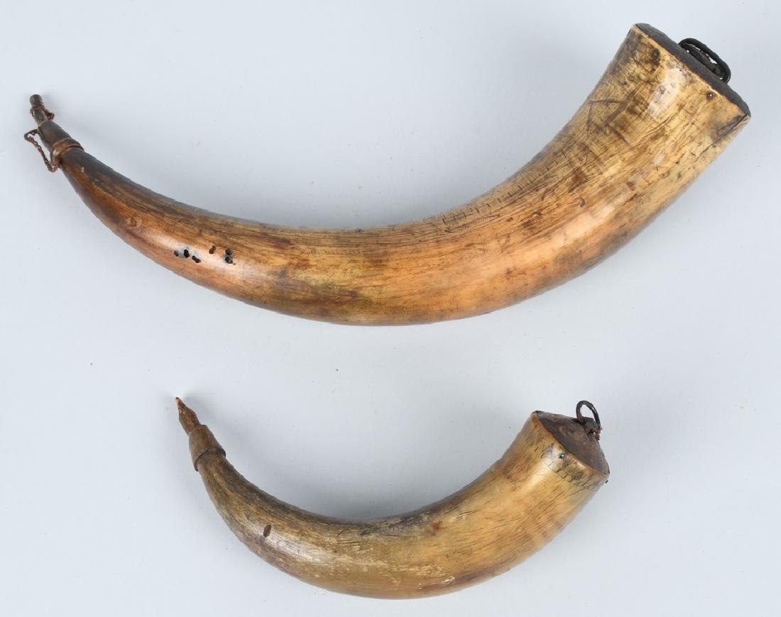 2-19th CENT. ETCHED GUNPOWDER HORNS