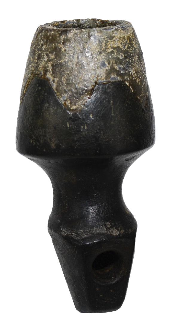 2 5/8" Micmac Pipe. WI. Black hardstone with pewter