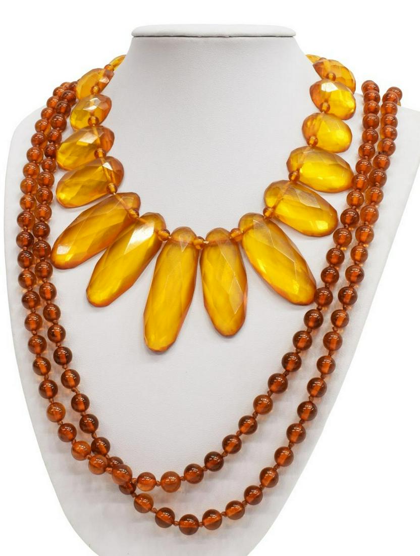 SoldTwo (2) Amber Beaded NecklacesTwo (2) Amber Beaded Necklaces; Size: L: 32-1/2"; (bead) L: 40mm (biggest)See Sold Price