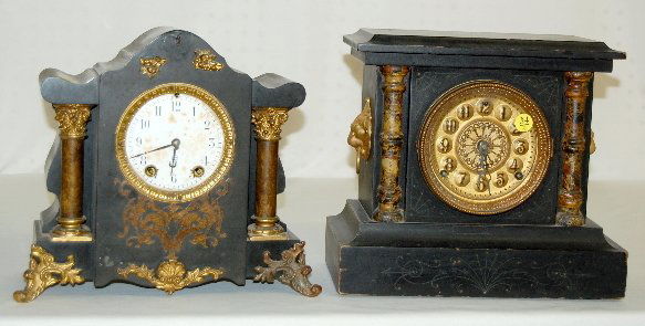 2 Antique Black Mantel Clocks, Seth Thomas