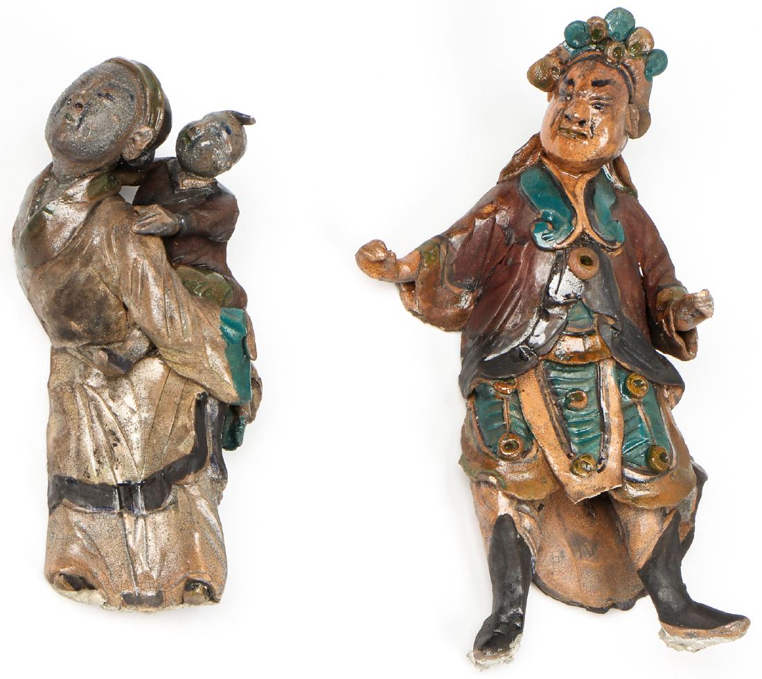 2 Antique Chinese Glazed Polychrome Ceramic Figures
