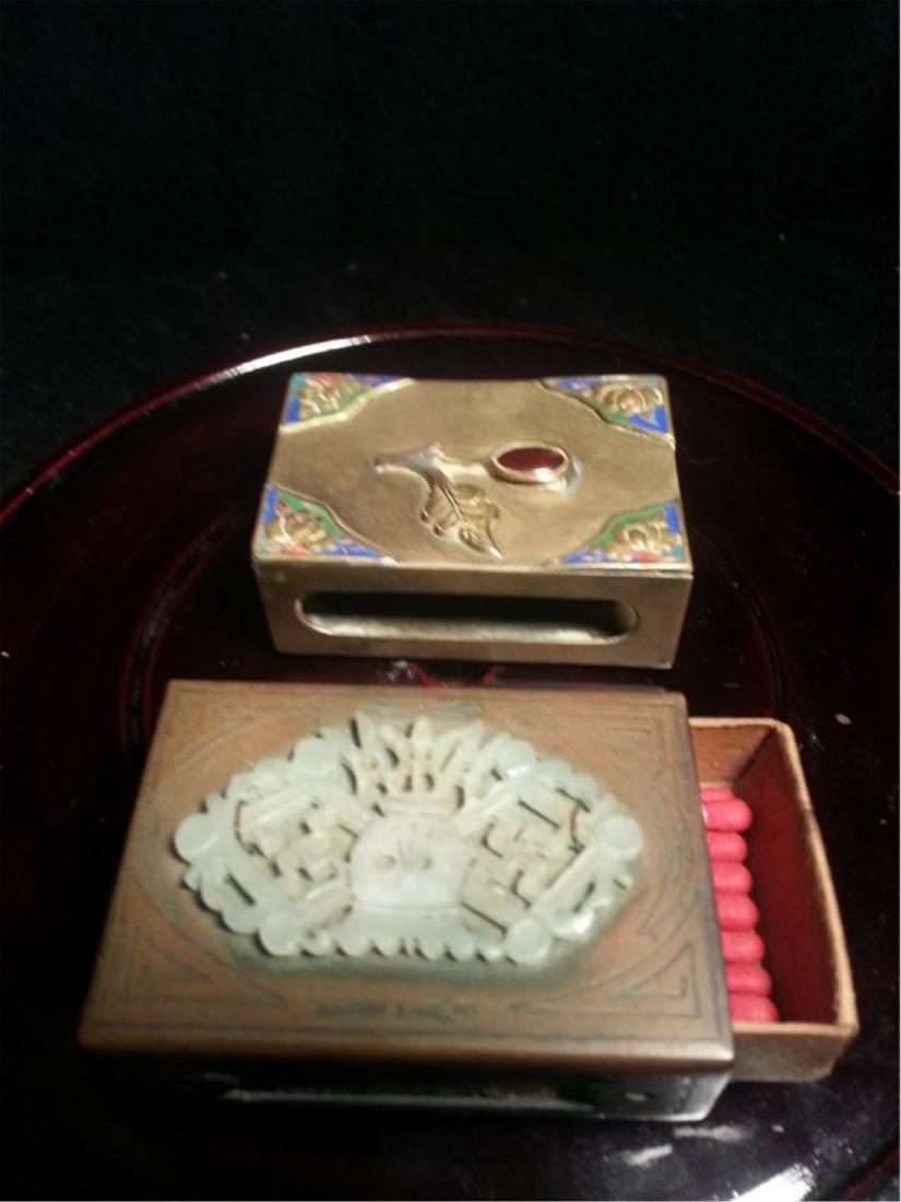 2 ANTIQUE CHINESE JADE MATCH BOX