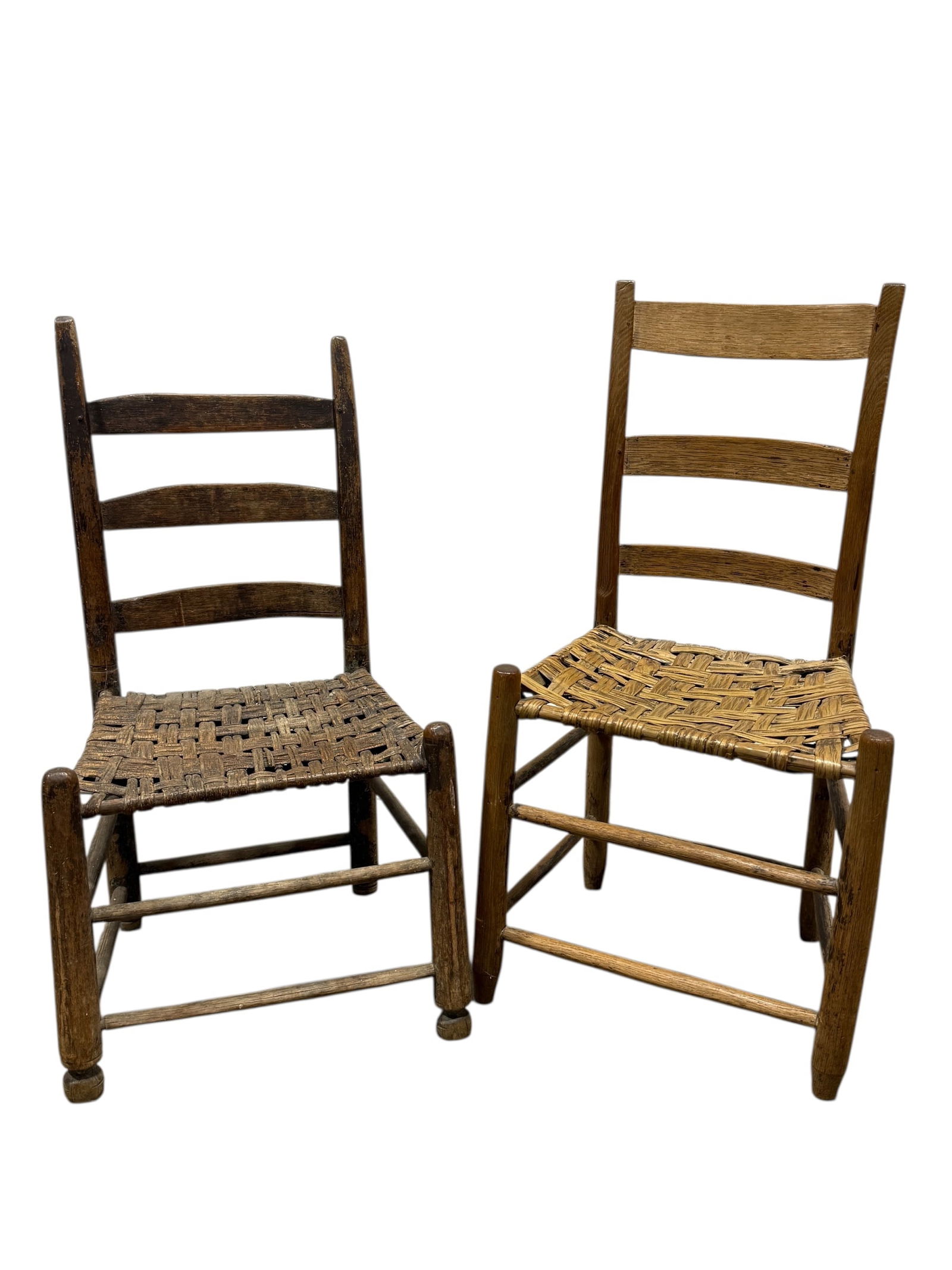 2 Antique Ladder Back Splint Weave Chairs