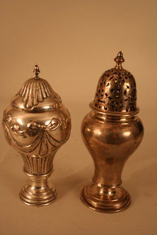 SoldLot of 2 English Sterling Sugar Casters, 19th cLot of 2 English Sterling Sugar Casters, hallmarked, 19th c, tallest 8.5", very good condition, total weight 16.15 ozt for bothSee Sold Price
