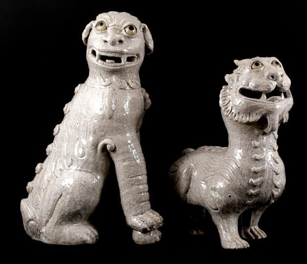 SoldPair Antique GLAZED CERAMIC ASIAN FOO DOGS ON BASESPair Antique GLAZED CERAMIC ASIAN FOO DOGS ON BASES.Size: 11 h , base is 3.5 x 2.5See Sold Price