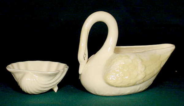 2 Belleek Items: Figural Swan & Shell Dish NR