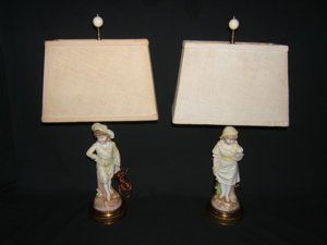 Sold6 Small Porcelain / Bisque Figural Lamps6 Small Porcelain / Bisque Figural Lamps (TGLI7083/6)(WT) Dimensions: Tallest 15 1/2" top of fixtureSee Sold Price