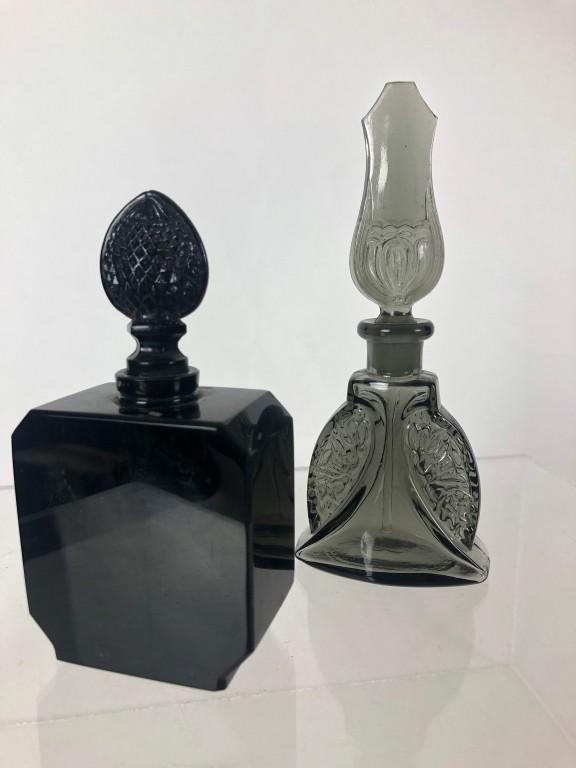 2 Black Glass Perfume Bottles