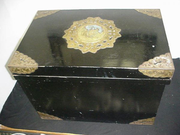 Chinese Gilt / Lacquer Tea Chest - 19th CenturyMar 08, 2026English Aesthetic ebonized casket box with brass panels8 hrs LeftChinese Stacked Black Lacquer with Gilt Chest, Crescent Shape 1970, H 7.5" W 21" Depth 10.5"Mar 19, 2026A HIDE COVERED AND BRASS MOUNTED TRUNK, OF RECENT MANUFACTUREIndian Brass Mounted Carved Wood ChestMar 26, 2026A Chinese Lacquer Writing Box with Inlaid Panels1 day LeftVintage Celluloid Hard Plastic Asian Style Lidded Embossed Jewelry BoxJul 21, 202519th century bronze sarcophagus form jewelry cask. Case with dark/black patina and gilt accents and2 days LeftAntique Chinese Black Lacquer And Mother Of Pearl Inlaid Jewelry Box2 days LeftMoroccan Trunk, Carved Mahogany with BrassMar 08, 2026Burmese or Thai Gilt Lacquered Manuscript Chest1800s Antique Firewood Coal Wood Repousse Box Brass PanelsA BLACK LACQUER AND CHINOISERIE DECORATED OAK WRITING BOX, CIRCA 166018th/19th century Korean mother of pearl inlay lift top box. Mother of pearl and brass inlay on skin2 days LeftEbonized & Inlaid Humidor with Sevres Floral Porcelain Plaque c1890Mar 07, 2026Large Vintage Black & Gold Chinoiserie Box