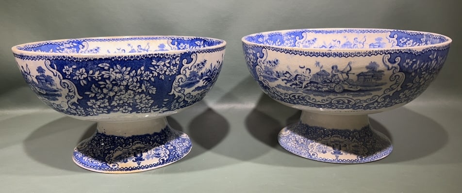 2 BLUE & WHITE TRANSFERWARE COMPOTES
