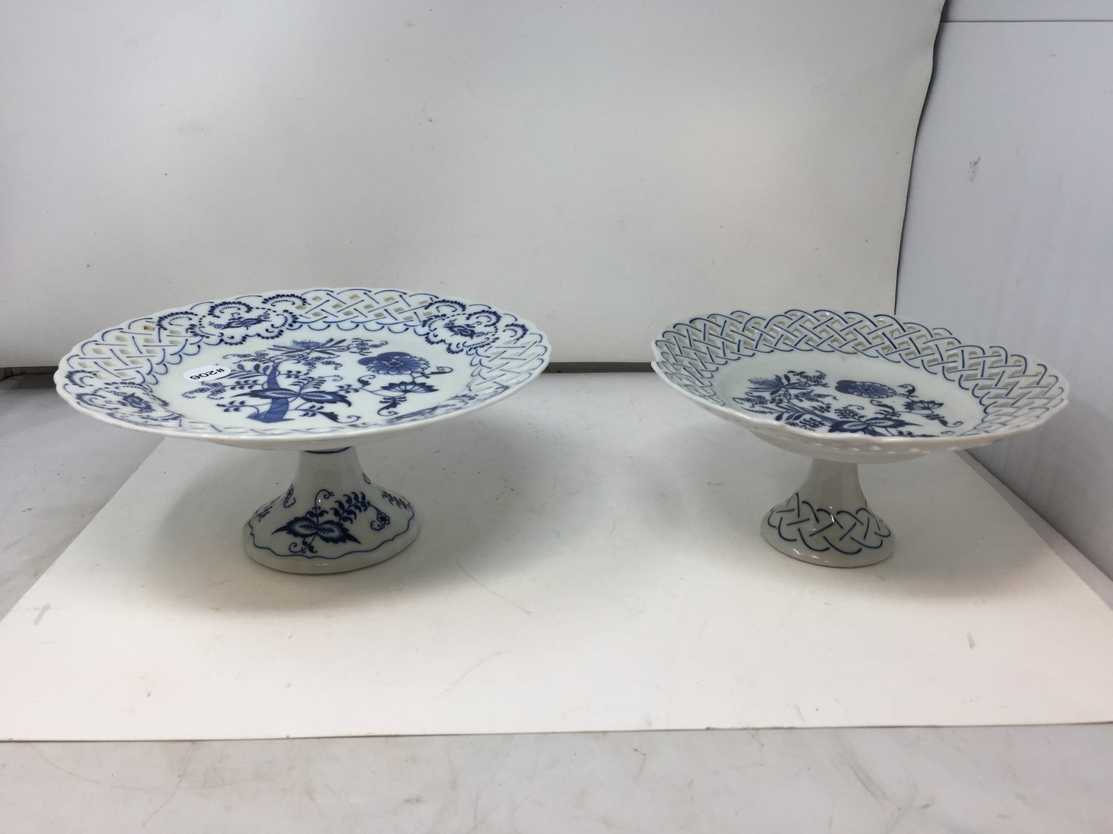 (2) Blue Onion Reticulated Compotes