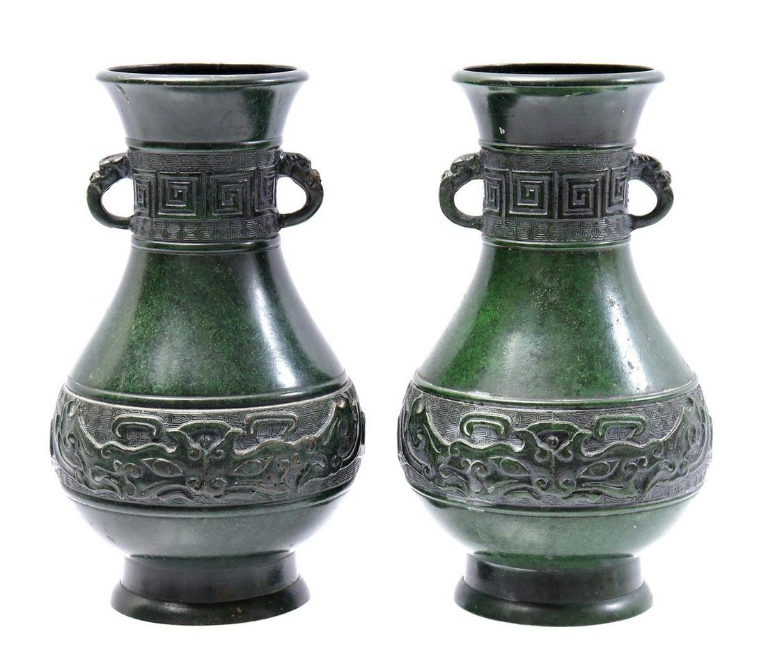 2 bronze green colored ear aces