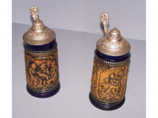 SoldBlue Salt Glaze .5 Liter Monk Character Beer Stein1/2 Liter Blue Salt Glaze Monk Character Beer Stein. It comes in nice condition with a couple of small flea bites on the body (see photos). The strap is a little loose.See Sold Price