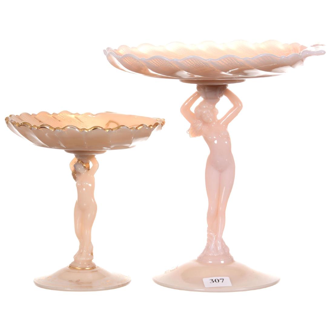 (2) Cambridge Crown Tuscan Compotes with Nude Stems
