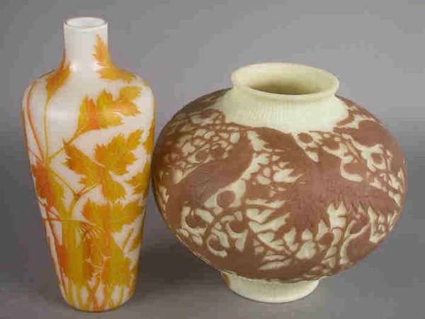 (2) Cameo glass vases,