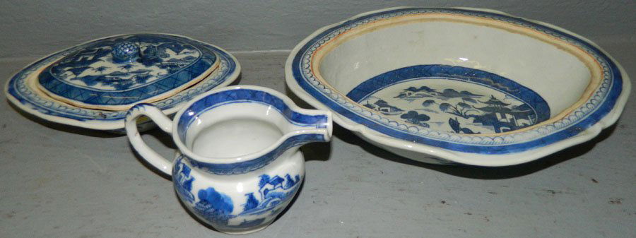 (2) Canton pieces and (1) covered tureen.