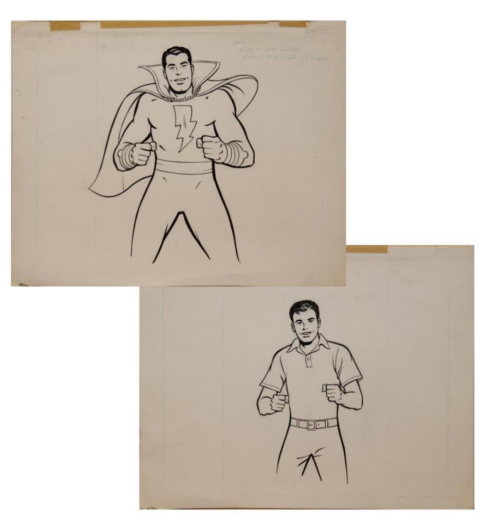 (2) Captain Marvel Pen & Ink Drawings