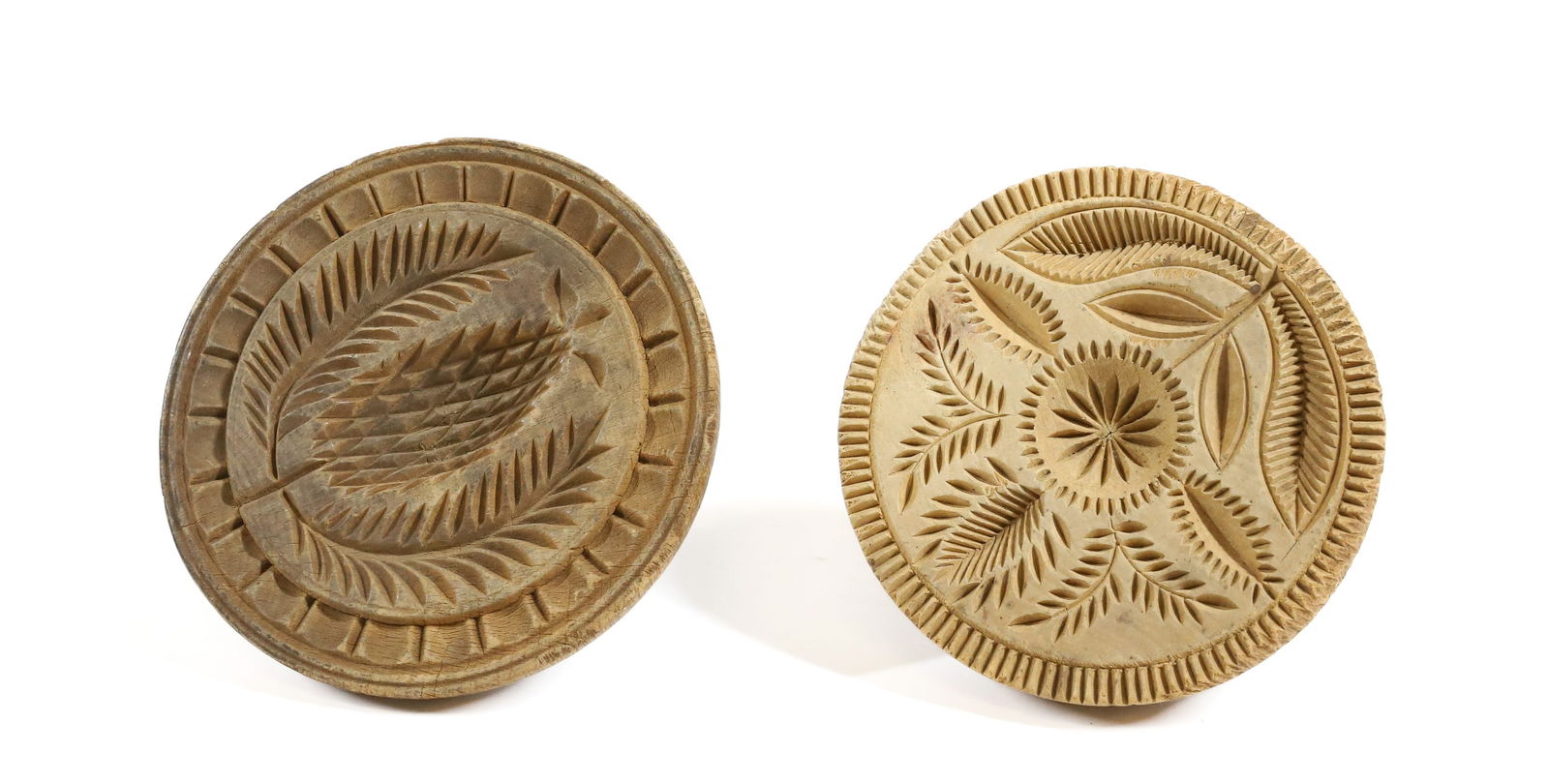 (2) CARVED WOODEN BUTTER STAMPS
