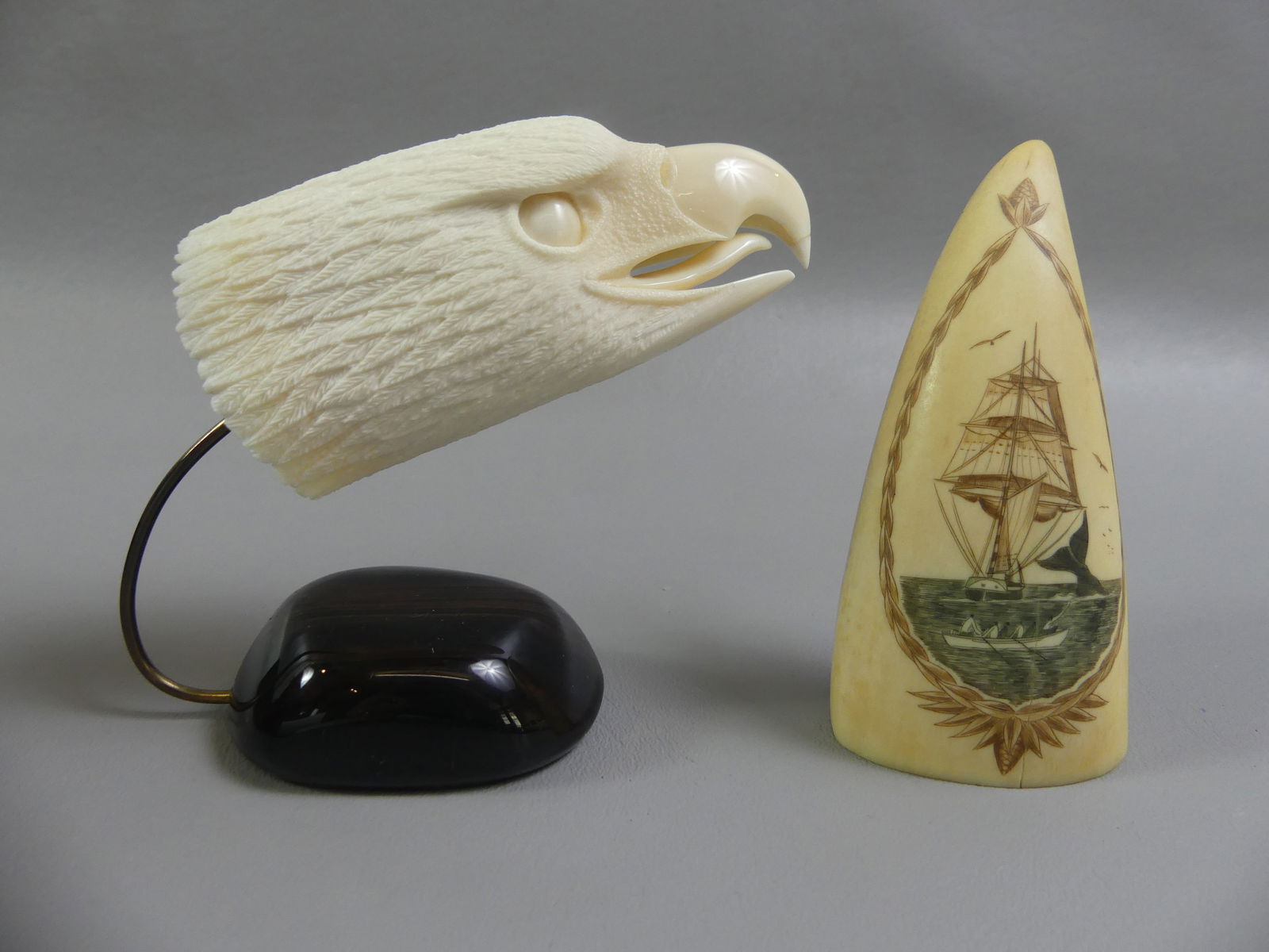 Rick Cain & Ralph Ireland Animal Motif CarvingsFeb 26, 2026RARE SCRIMSHAW RELIEF-CARVED WHALE'S TOOTH 19th Century Length 7". Includes stand.Feb 26, 2026SCRIMSHAW WHALE'S TOOTH WITH ANIMAL IMAGERY 19th Century Length 4.75".Feb 26, 2026ESKIMO RELIEF-CARVED WHALE'S TOOTH DEPICTING PENGUINS 20th Century Length 5.75".Feb 26, 2026* PAIR OF POLYCHROME ENGRAVED WHALE'S TEETH BY RYAN COOPER DEPICTING THE CIVIL WAR SHIPS "ALABAMA" AFeb 26, 2026LARGE 2-SIDED SCRIMSHAWN WHALES TOOTH OF WHALERS AT WORK2 days LeftSCRIMSHAW WHALE'S TOOTH ATTRIBUTED TO WILLIAM LEWIS RODERICK First Half of the 19th Century LengthFeb 26, 2026SCRIMSHAW WHALE'S TOOTH WITH WHALING AND OTHER SCENES Mid-19th Century Length 5.75". With stand.Feb 26, 2026PAIR OF LARGE SCRIMSHAW AND INLAID WHALE'S TEETH 19th Century Lengths approx. 7.5".Feb 26, 2026* CARVED RIGHT WHALE 20th Century Length 6.5".Feb 26, 2026* ENGRAVED WHALE'S TOOTH BY NANCY CHASE Dated 1971 Height 8.5".Feb 26, 2026* ENGRAVED WHALE'S TOOTH BY NANCY CHASE Dated 1971 Height 8.5".Feb 26, 2026LARGE SCRIMSHAW WHALE'S TOOTH DEPICTING THE SHIP "MARY" OF BOSTON Second Half of the 19th CenturyFeb 26, 2026SCRIMSHAW WHALE'S TOOTH WITH WHALING SCENE 19th Century Length 6.25".Feb 26, 2026Collection of Japanese Carved Objects, Netsuke2 days Left(2) SCRIMSHAWN PILOT WHALE TEETH2 days Left