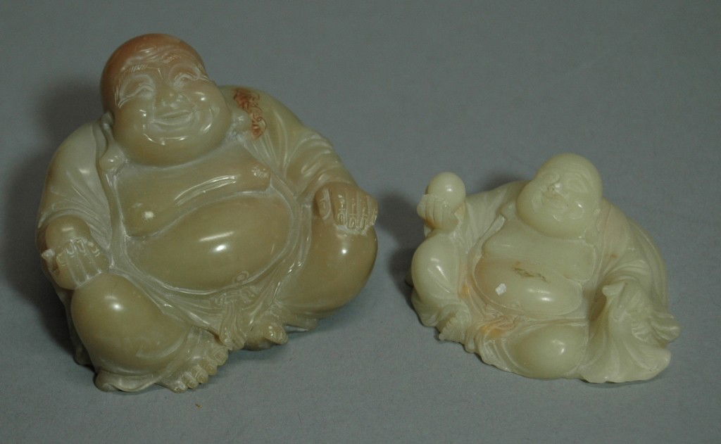 2 Celadon Jade Carved Buddha