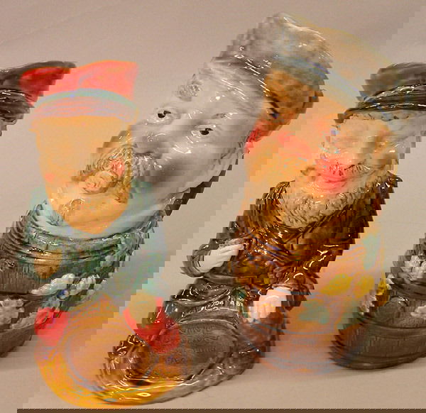 SoldJug Pearly Boy D6249 - Mini - Royal Doulton Character JugBrown hat, brown buttons and coat; red and yellow scarf. Royal Doulton backstamp. #England #Ceramics #Antiques Issued: 20th c. Dimensions: 2.5"H Manufacturer: Royal Doulton Country of Origin: EnglandSee Sold Price