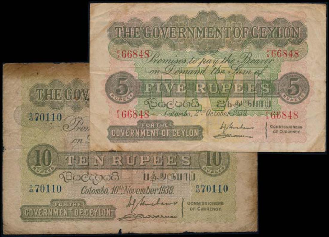2 Ceylon 5 Rupees 10 Rupees 1938-39