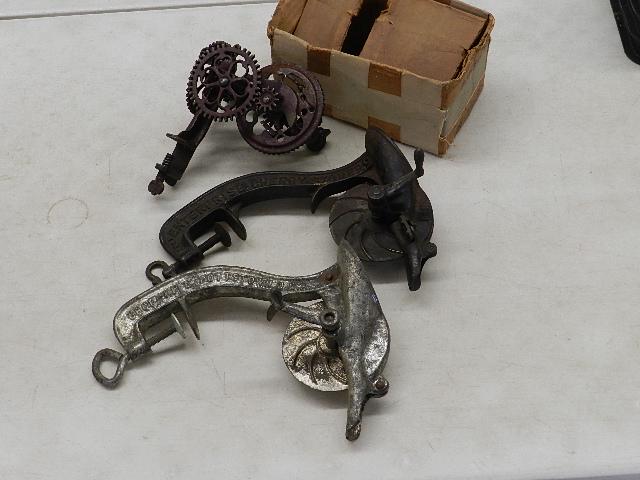 MIXED TOOL LOT VINTAGE ANTIQUE15 hrs LeftMIXED TOOL LOT VINTAGE ANTIQUE15 hrs LeftLot Antique Bullet Molds and A CapperMar 07, 2026Metal Tool and Hardware Lot Watchmaker Watchmaking Tools28 mins LeftVintage Kitchen Untensil Lot (10 pcs)Mar 09, 2026Vintage Lot of Tin and Aluminum Cookie Cutters Inc. Red / Green Wood HandlesMar 16, 2026ASSORTED MANUFACTURERS "BELL SYSTEM" CRIMPERS AND OTHER HAND CABLE TOOLS, LOT OF 18Mar 04, 2026Lot of 3 Antique Railroad Padlocks & C.M. & St. P. Ry Lock Cover w/ Keys & ChainMar 05, 2026ANTIQUE TOOL LOT5 days LeftLOT OF VINTAGE KITCHENWARE5 days LeftLOT OF VINTAGE KITCHEN UTENSILS5 days LeftEconomy Cobbler Wood Crate, GTE Sign, Padlock Trinket, Cobbler Tools, Riveter and MoreMar 16, 2026Universal Meat Grinder No. 3 Parts Vintage Metal Kitchenware2 days LeftHand-crank grinder / table-mount string winderMar 27, 2026Antique Wagner Ware Krusty Korn Kobs CA Pan, White Mtn. Apple Peeler, Tin Candle MoldMar 16, 2026Antique Cast Iron Apple Peeler - Advance Model 12"Mar 08, 2026