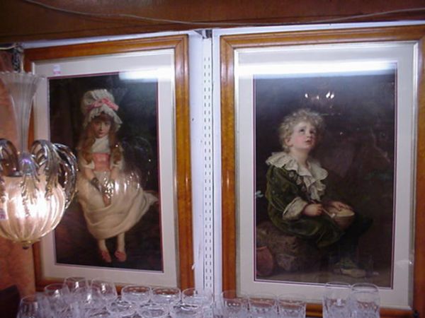 2 Child Portrait Prints in Birds Eye Maple Frames