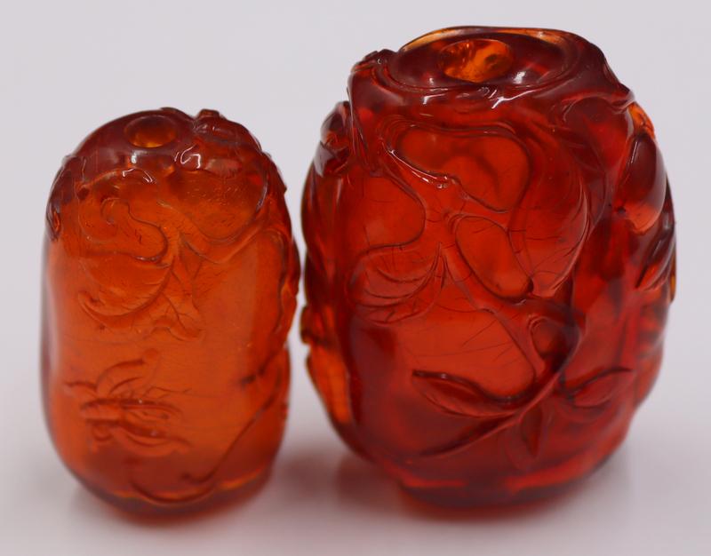 (2) Chinese Carved Amber Snuff Bottles.