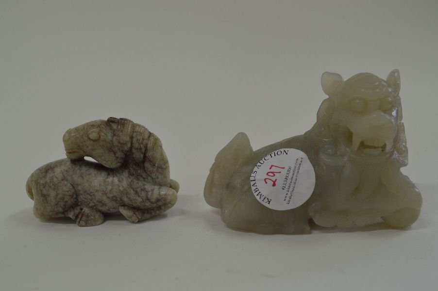 A HETIAN JADE CARVED AUSPICIOUS BEASTS FIGURE (PAIR)