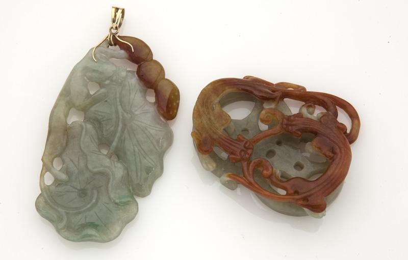 (2) Chinese carved jadeite pendants,