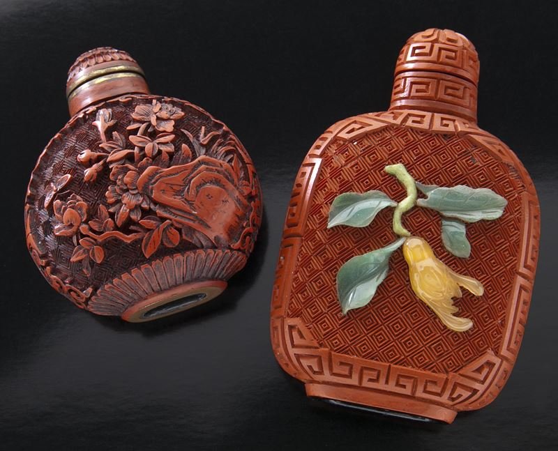 (2) Chinese cinnabar snuff bottles,