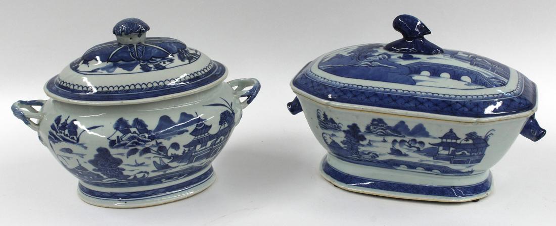 (2) CHINESE EXPORT CANTON COVERED SOUP TUREENS