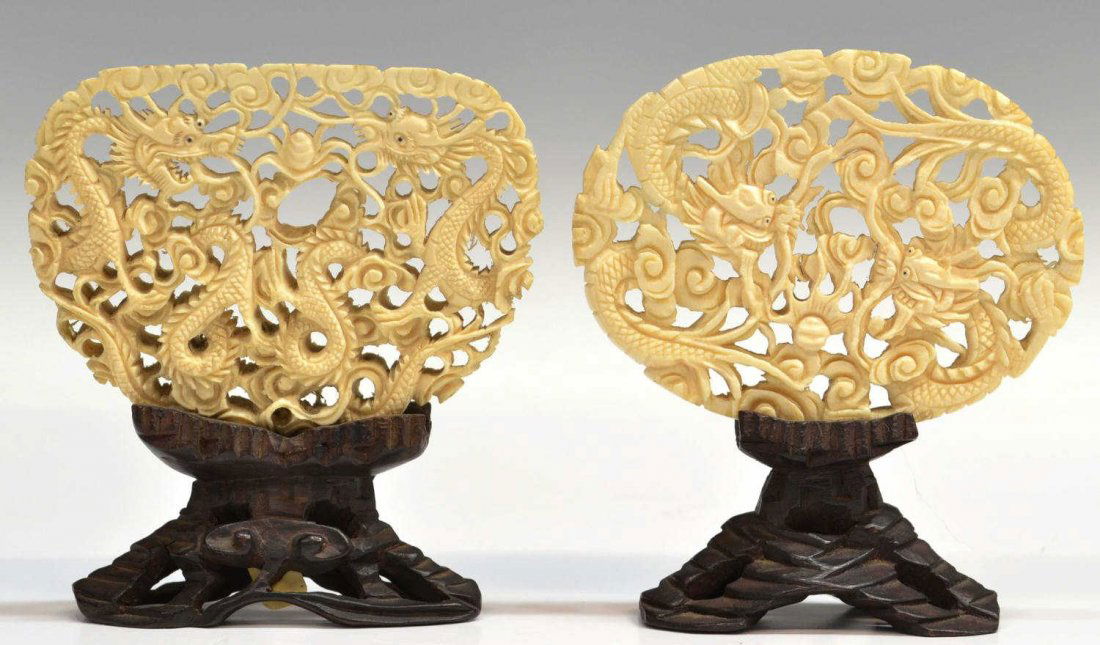 (2) CHINESE PIERCED IVORY PLAQUES