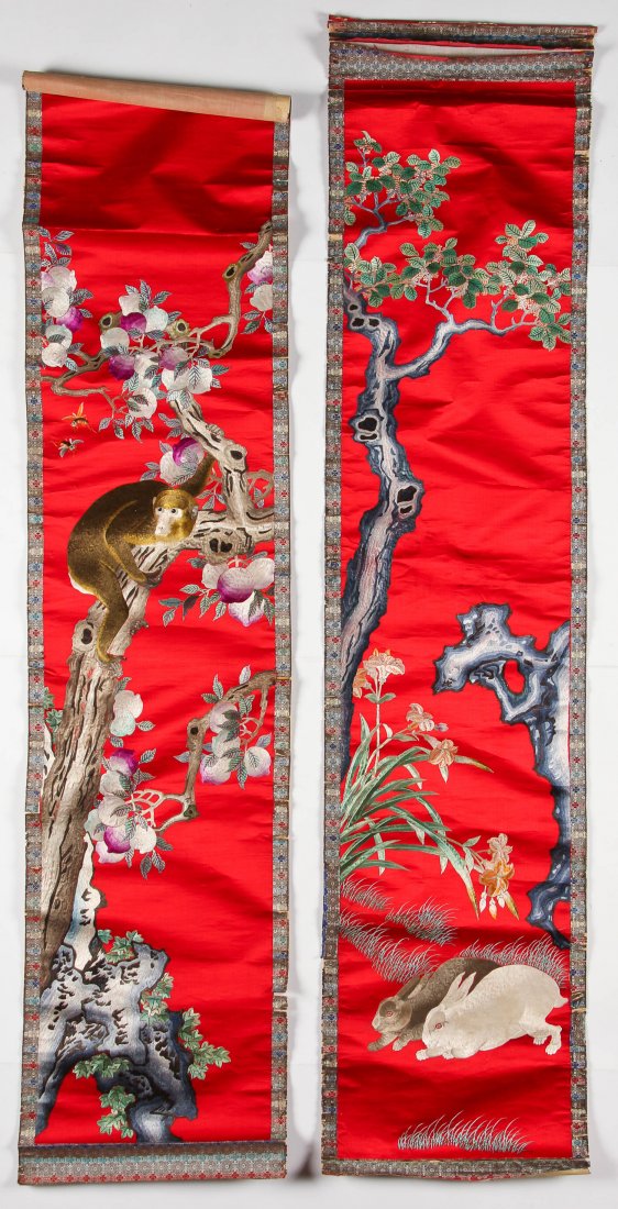 2 Chinese Silk Embroidered Scrolls