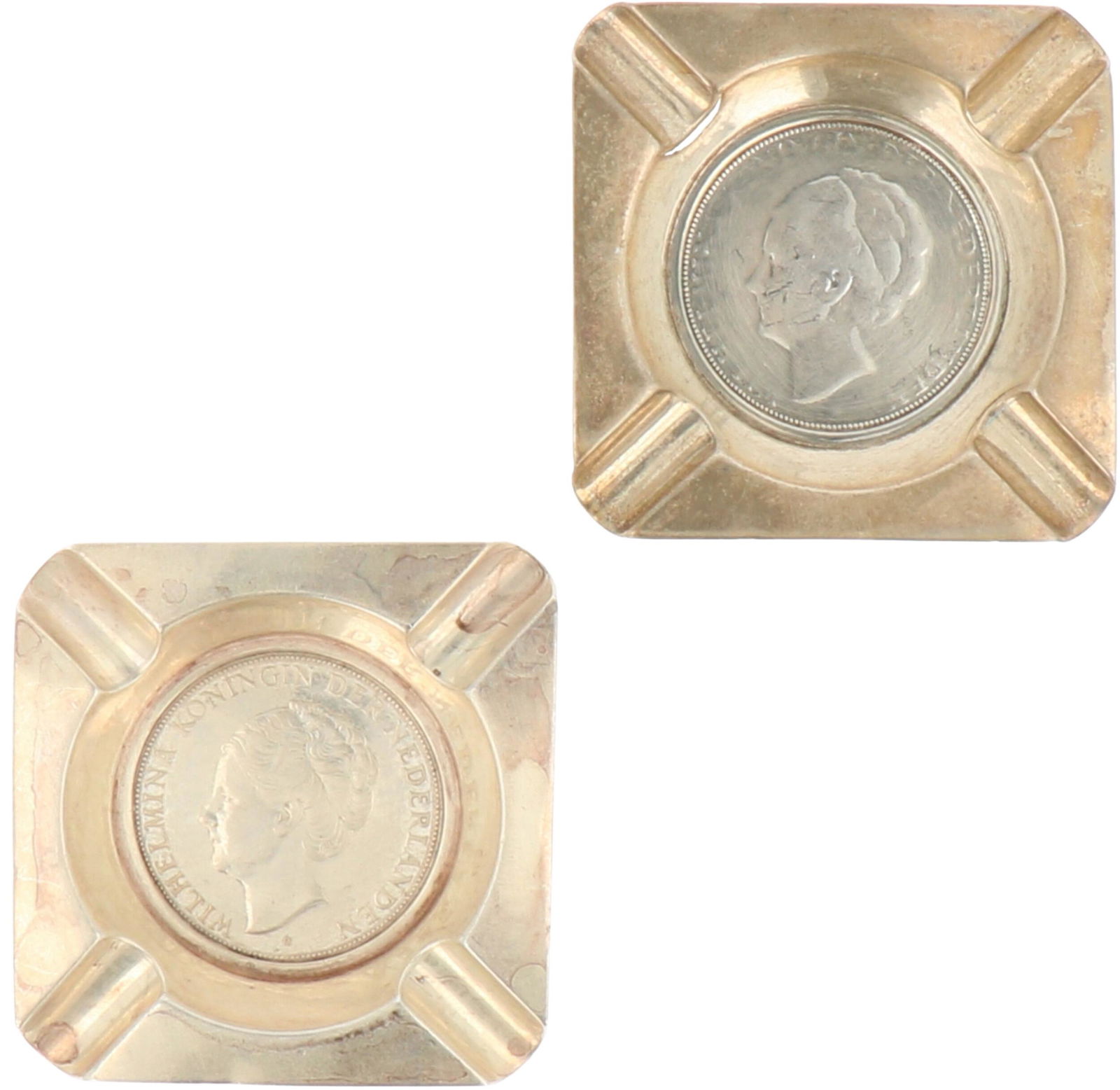 (2) coin ashtrays silver.