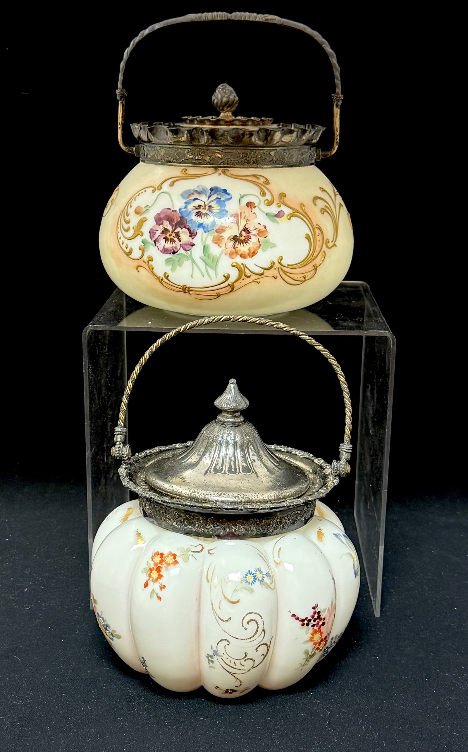2 Antique English Pottery Lidded Biscuit Barrels