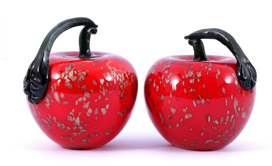 2 colored glass apples