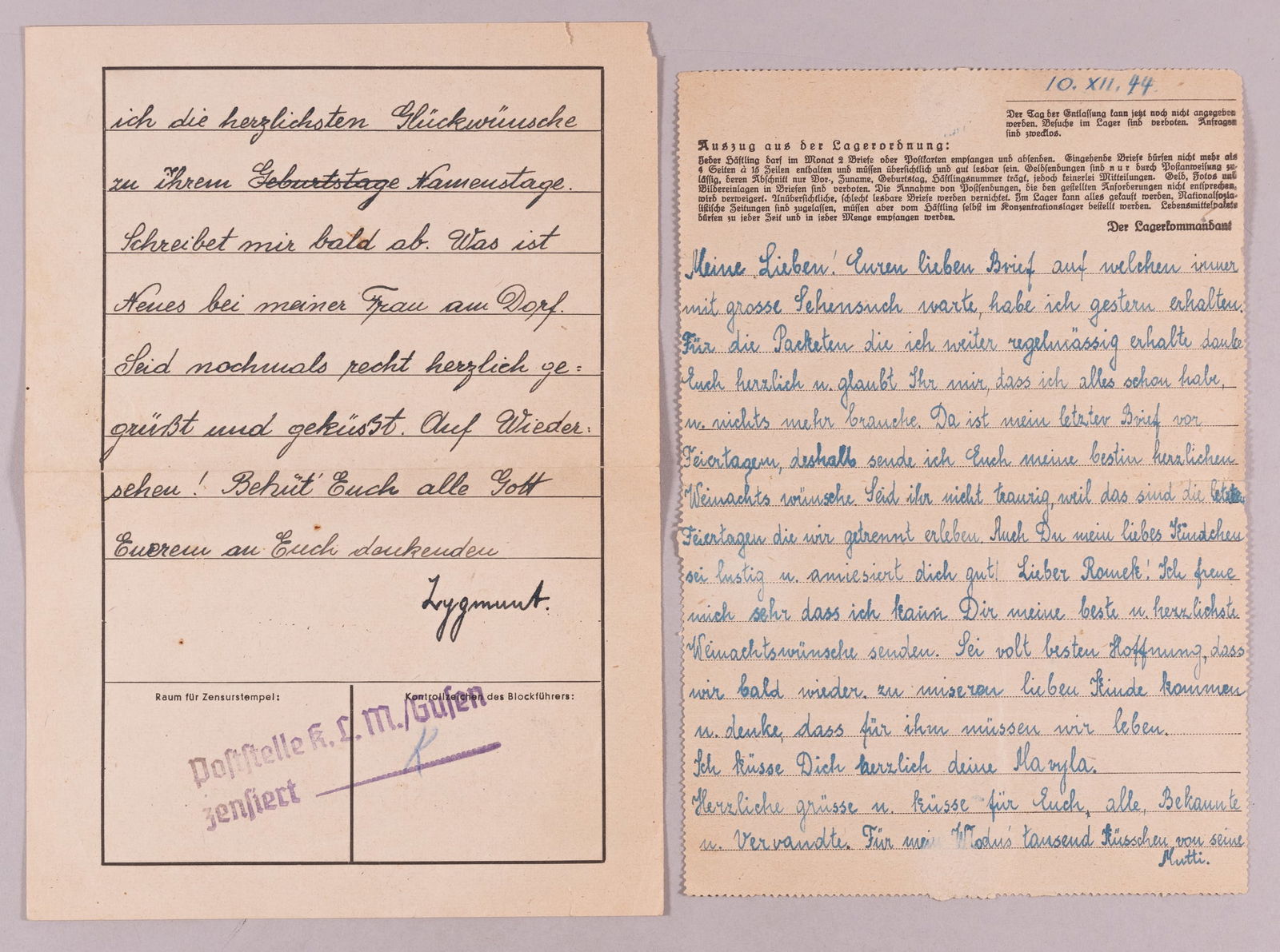 2 CONCENTRATION CAMP LETTERS