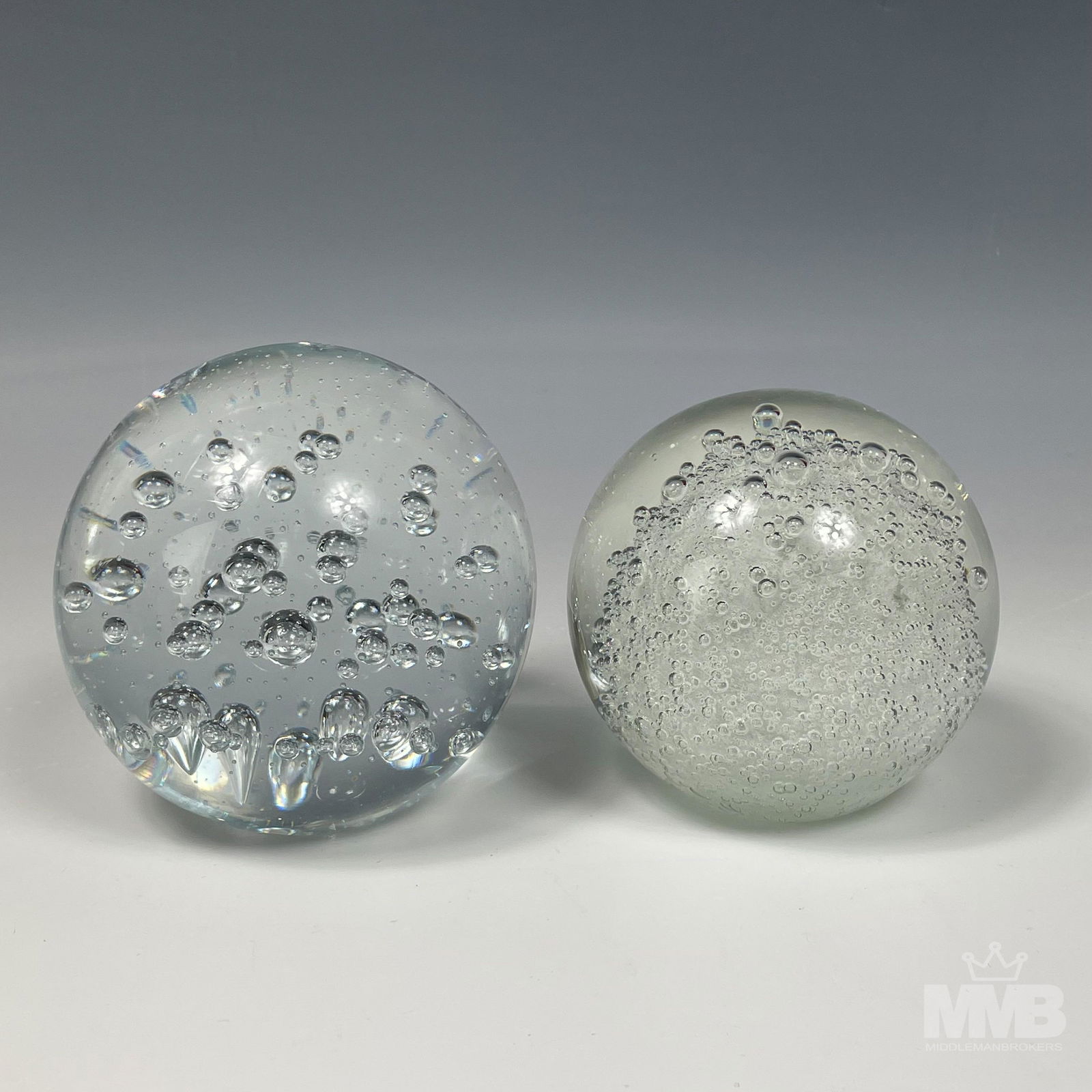 2 Controlled Bubble Clear Art Glass Paperweights
