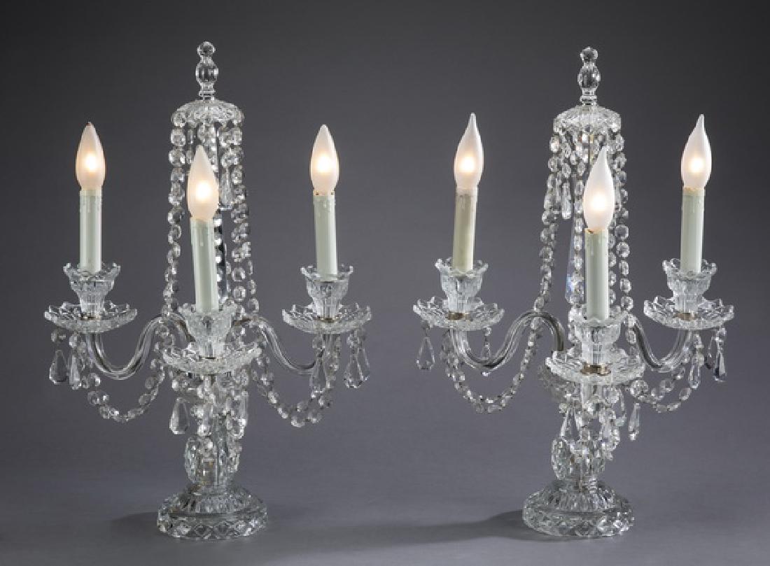 (2) Crystal three-light candelabra, 21"h