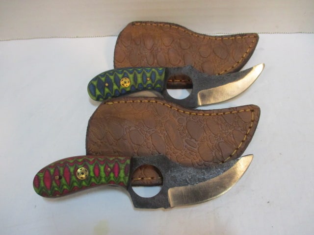 2 Custom Skinner Knives with Leather Sheaths