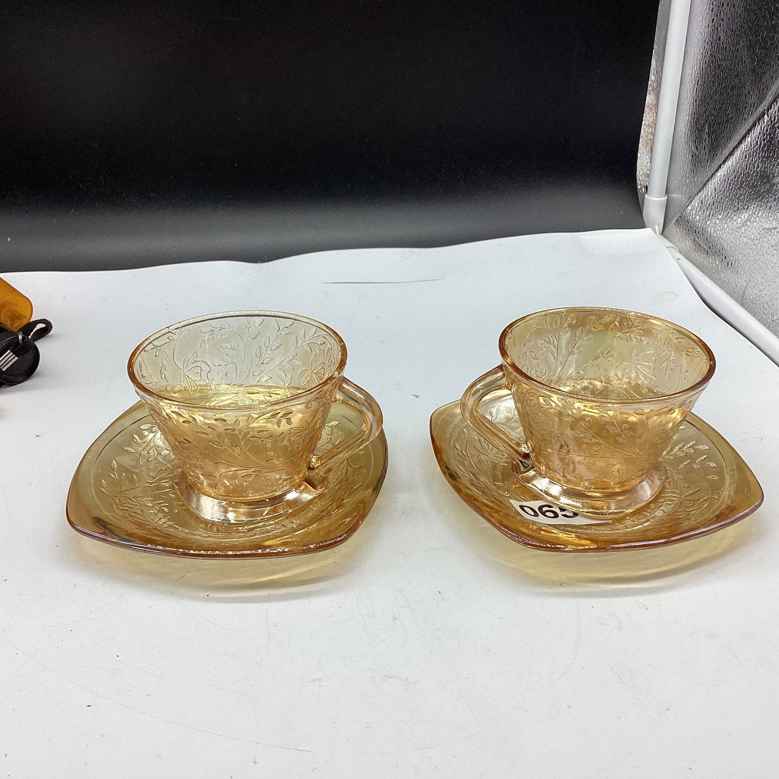 2 Depression Floragold Cup & Saucers