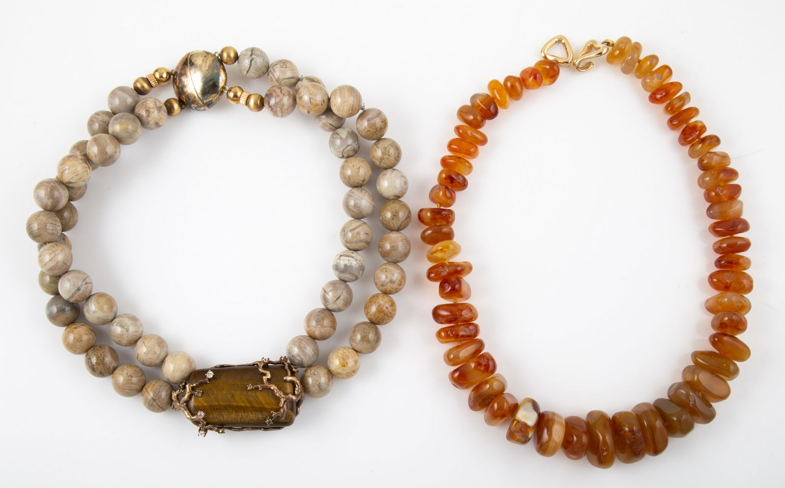 NECKLACES, BRACELETS, AND PENDANT LOT (11)Mar 28, 2026Lot Tiger Eye Bead Necklace and Earrings8 hrs LeftLOT OF FOUR JADE BEADED NECKLACES WITH GEMSTONES4 days LeftPre Columbian Style and Amber Beaded Necklace LOT1 day LeftFIVE VINTAGE NATURAL STONE BEADED STRETCH BRACELETS4 days LeftAgate necklaceMar 18, 2026PAIR OF PHOENICIAN CARNELIAN, ROCK CRYSTAL AND GLASS BEADED NECKLACESApr 11, 2026African Terra Cotta and Glass Necklaces 2 PCSMar 19, 2026A Pair of Multicolor Agate and Opalite Beaded Necklaces5 days LeftTwo 925 Goldstone & Banded Agate NecklacesMar 18, 2026Amber Necklace with Pendant Paired with Two Tone Amber Necklace4 days LeftGroup of Heavy Tiger Eye Stone JewelryMar 28, 202631" 18KT YELLOW GOLD CHIMENTO CITRINE & GOLD BEAD NECKLACE 24.5 DWT & 18KT YELLOW GOLD & AMBER 75 days Left13" STRAND NATURAL TIGER' EYE BEADS ROUND 5 - 6 MMMar 29, 202614K Gold Gemstone and Scarab BraceletsMar 20, 2026AGATE, JADE AND MOTHER-OF-PEARL NECKLACE AND EARCLIP SUITE