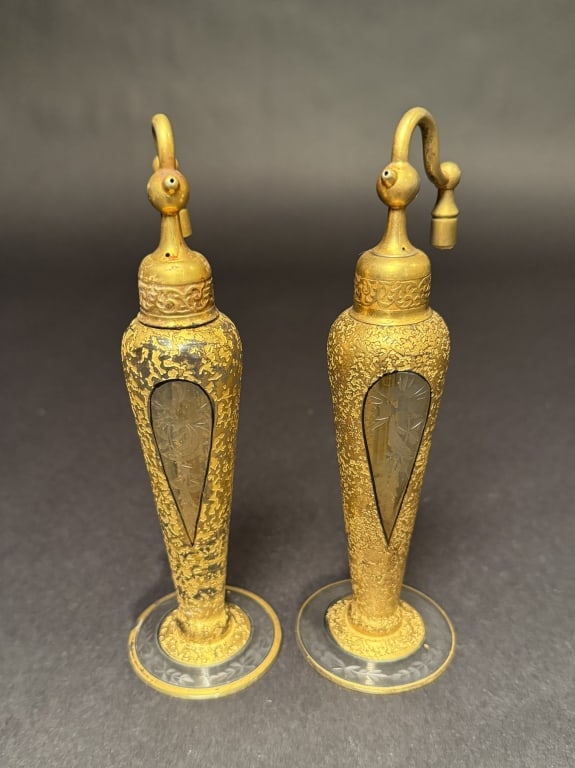 2 DeVilbiss Wheel Cut And Gilt Atomizers