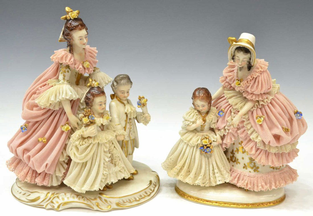 (2) DRESDEN LACE STYLE PORCELAIN FIGURAL GROUPS