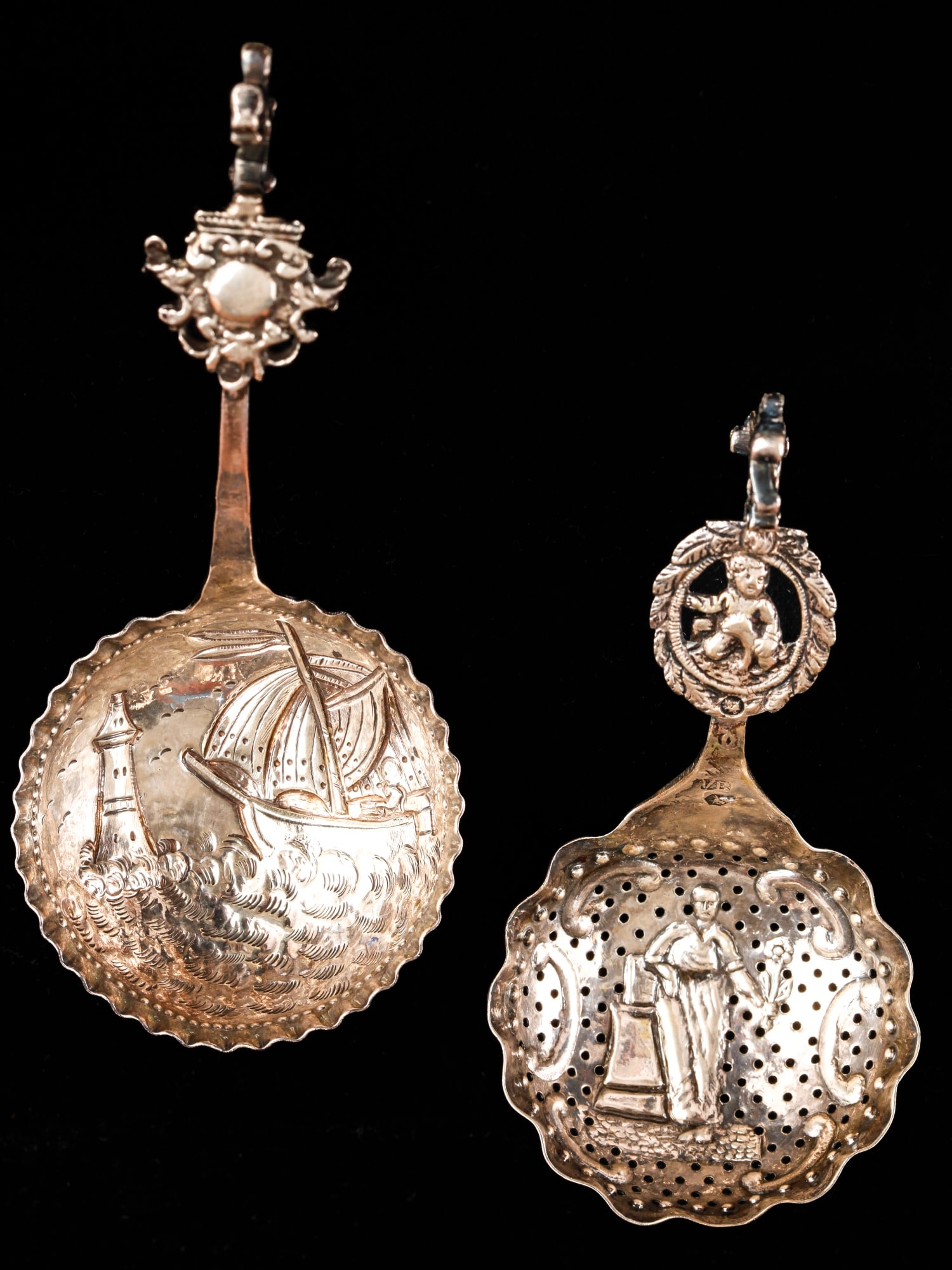 (2) DUTCH CONTINENTAL SILVER TEA STRAINERS