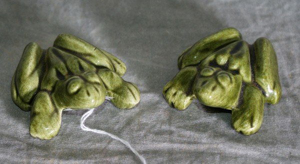 2 erotic ceramic frogs. L:3" .